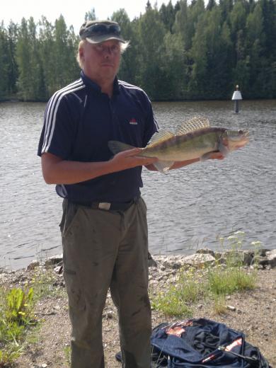 Hannun tulos oli 2805 gr, mukana säyne joka painoi 2115 gr. Pasi Kylliäisen kuha (kuvassa) painoi 2,3 kg.
