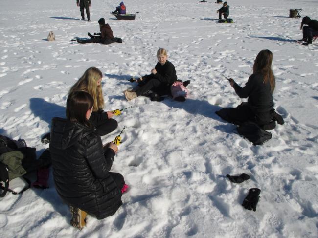 Sää oli ns. tilauksen mukainen. Pilkkipaikka kylpi aurinkoisessa ja tyynessä kevätsäässä.Sataman särjet ja lahnat ilmeisesti säikkyivät kirkasta ilmaa mutta ahvenet olivat uteliaita tarjotuille houkutuksille. 19 henkilön kopla onnistui pyydystämään yhteensä 12 ahventa. Pilkkijöistä kolme (oppilaat Sipi, Asta ja Miikka) saivat kukin kaksi ahventa ja kuusi muuta sai yhden. Leikkimielisen kilpailun voitti arvonnassa oppilas Miikka. Sitkeimmän yrittäjän titteli ja pieni palkinto luovutettiin oppilas Nennalle. Viihdyttävä tapahtuma. Lopuksi muutama sitaatti: